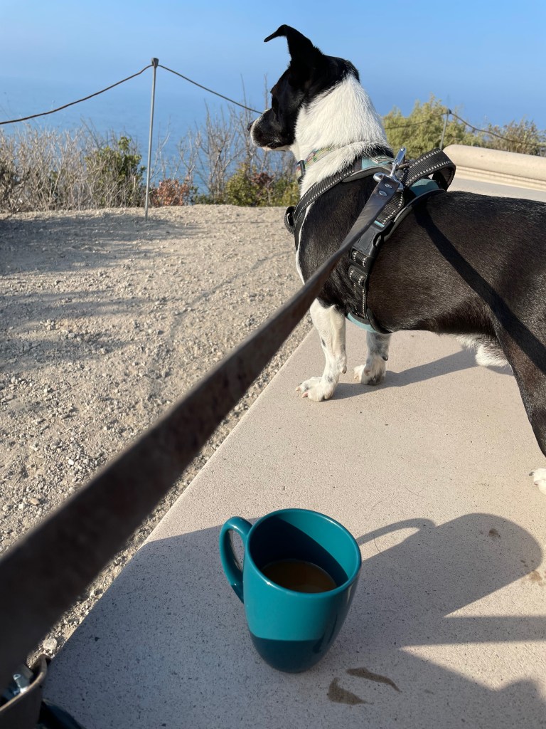 The next morning I walk Cosmo past the camper that I think the argument might have emanated from. There is a black and white kitten sitting under it. I think it must be a feral cat. If I can catch it I can bring it to the nonprofit cat shelter in my town. It shies away when I approach. I put out a bowl of water and a handful of Cosmo’s kibble in the site. I notice that there is an animal carrier on the passenger seat of the RV. I then spot an open tuna or cat food can on the picnic table. This poor kitten is probably a hostage of angry man. Maybe so is the other man. They both don’t realize that they could flee. I feel sorry for them, but can’t fix any of this.